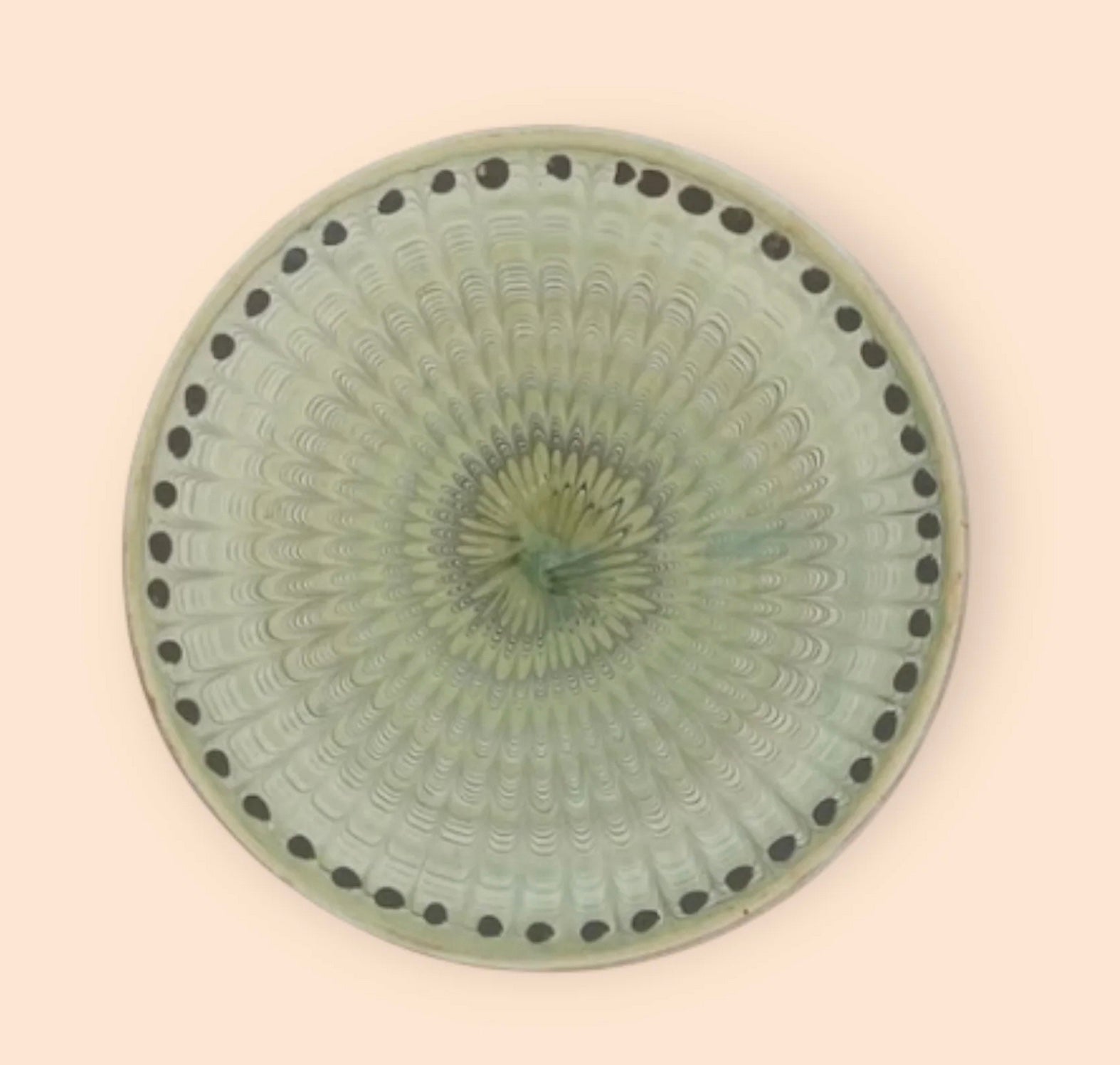 Smukt håndlavet rumænsk keramik. Brug det lille fad/tallerken til et bloklys, smykker eller blot pynt. Dia. 13-15 cm.