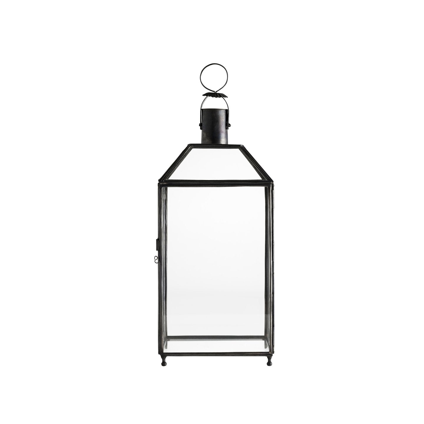 Håndlavet lanterne i oxideret messing. Til indendørs eller udendørs brug. Måler 50 cm uden det lille håndtag.