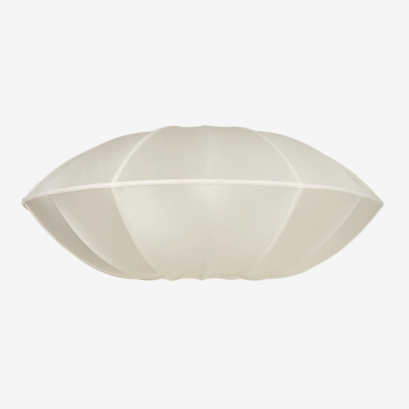Loftslampen måler 70x27 cm. Den er lavet af 100% råsilke med bomuldsbånd og farven er offwhite. Almindelig E27-fatning. Brug maks. 40 watt.