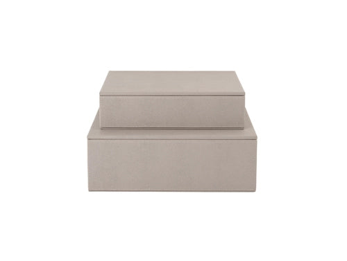Opbevaringsbokse kommer i et sæt af to størrelser, 30x20x10,5 og 25x15x7, og giver en praktisk og elegant opbevaringsløsning. Farven hedder fawn og er lys beige.