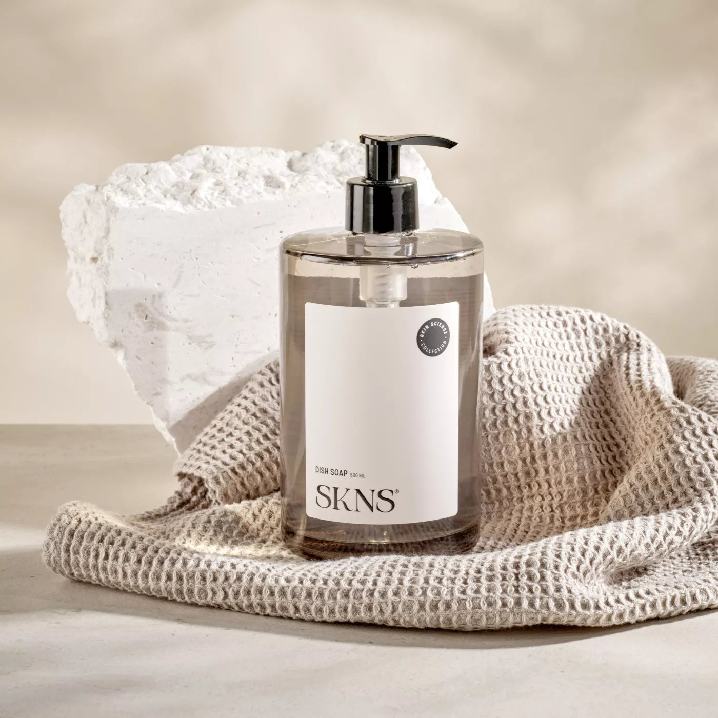 Med SKNS Dish Soap kan opvasken nemt klares. Opvaskesæben fjerner effektivt fedt og madrester, og efterlader dit køkken velduftende. Den er sammensat af de bedste ingredienser, der let fjerner selv det mest genstridige fedt og snavs fra gryder, knive, dit service mv. og efterlader dit køkkenudstyr og service skinnende rent. 500 ml.
