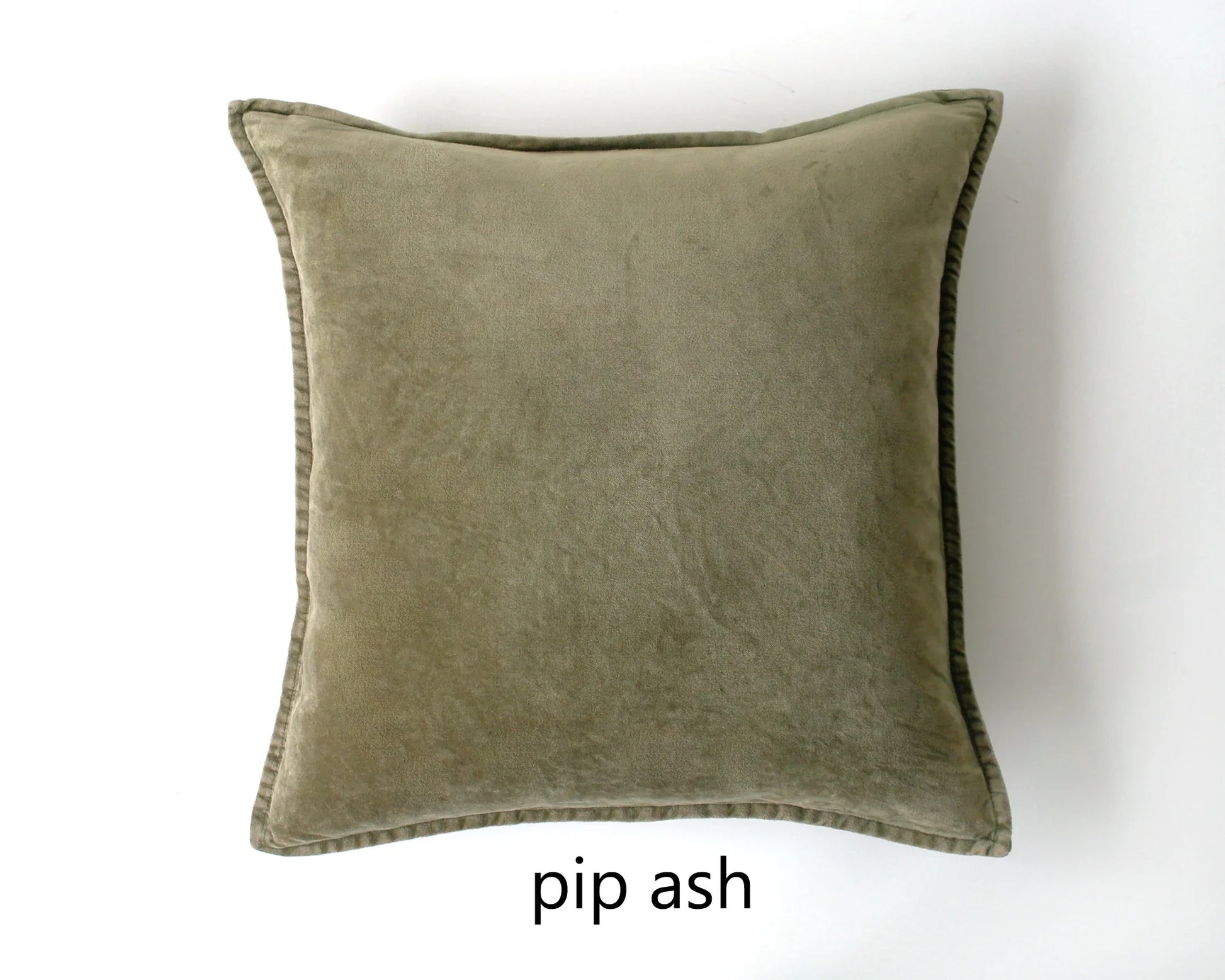 Pudebetrækket er lavet af en tyk og blød velour. 100 % bomuld. Pudebetrækket har en dobbelt piping. Prisen er med fyld. Fås i størrelse 50x50 eller 30x60.